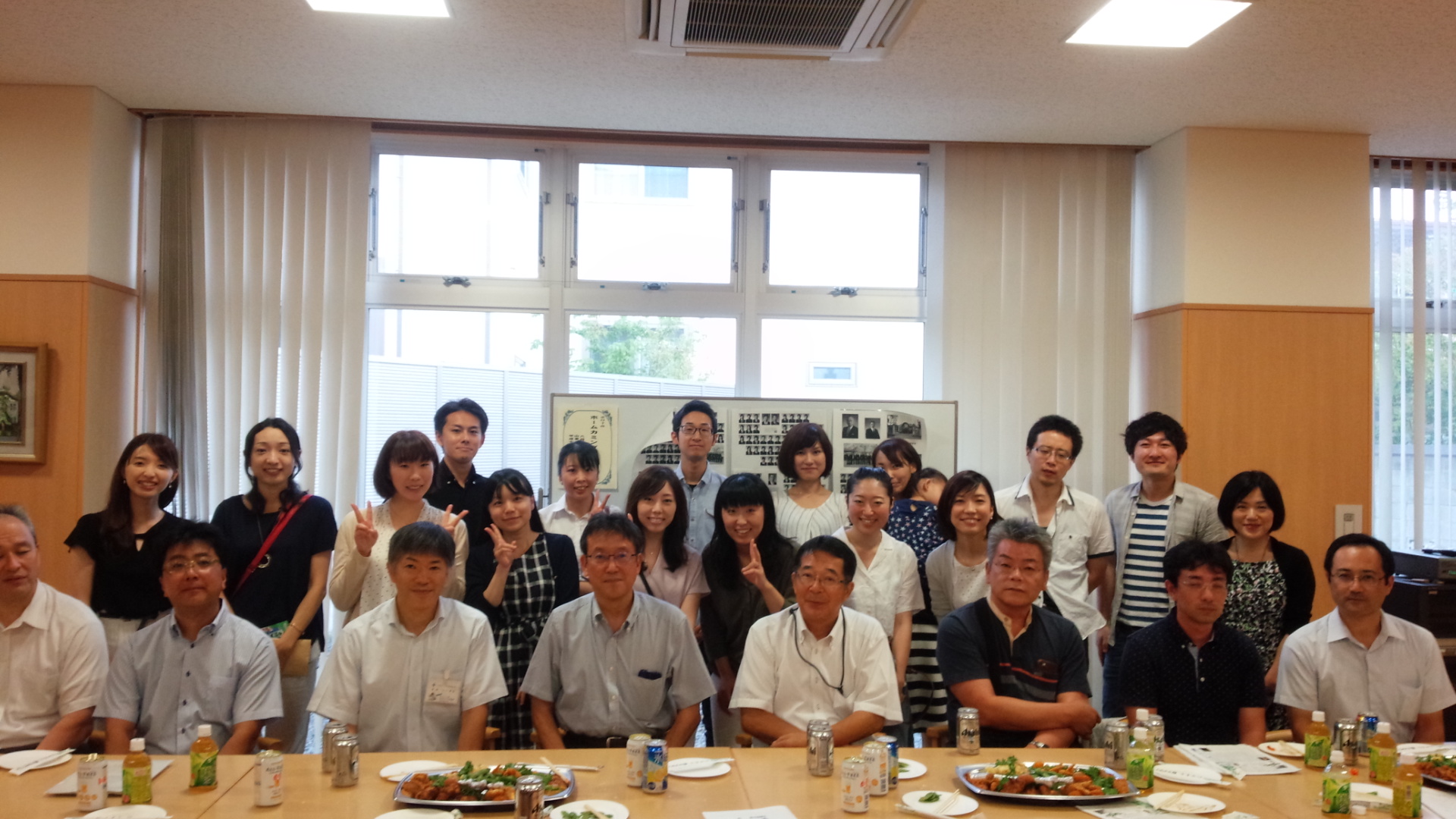 午後3時。なつかしい顔がそろった。浜田同窓会長のご挨拶、乾杯に続いて、近況報告のトップバッターは学年主任の平正明先生。
